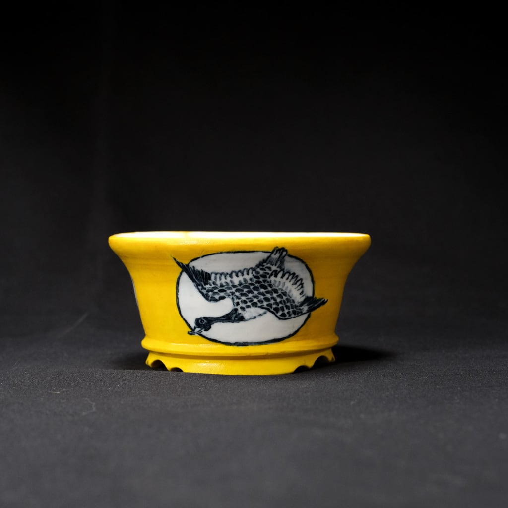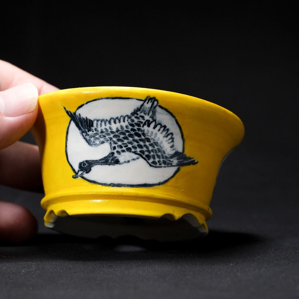 黄色は釉薬ではなく筆塗りのためザラザラしています。